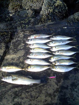 ジグ(メバジー)オンリーでのディメバル(7:30〜10:30)の釣果です。アクションで誘い、フォールで食わす。まさにその通りで食いました。岩、藻の切れ目を狙うと、ガンガンヒットしました。モンスターは何処にいるのかな?と色々キャストしましたが、出会うことは出来ませんでした。昨年からずっとジグにこだわりやってます。これからもジグにこだわり、ジグと相性の良いポイントを探し、モンスターをゲットします。メバジーは安くて釣れるジグなので、根掛かり恐れず攻めれるジグでお気に入りです!