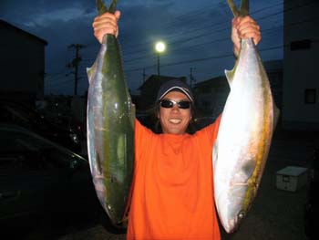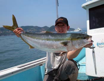 底でのバイトを意識して、着底後3,4回巻いて止めを入れた時にヒットしたそうです。以前にもK.I.JIG100gで10.6キロのブリを水無瀬で上げられております。大変ありがとうございます。これからも宜しくお願い致します。