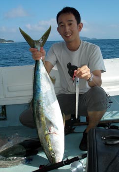 上記、大石船長から情報を頂きました。スローは潮に漂うタチウオ、早巻きは追われて逃げるタチウオといったイメージでしょうか。ブリ3本ゲット、おめでとうございます!