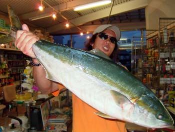 底でのバイトを意識して、着底後3,4回巻いて止めを入れた時にヒットしたそうです。以前にもK.I.JIG100gで10.6キロのブリを水無瀬で上げられております。大変ありがとうございます。これからも宜しくお願い致します。