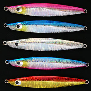 左右に振り過ぎない引き方向への動きから、ジャーク後のテンションが抜けた状態に移行した時、横を向きユラユラフォールしたり、ヒラヒラとバックスライドしながら、魚にバイトさせる能力の高いジグです。
