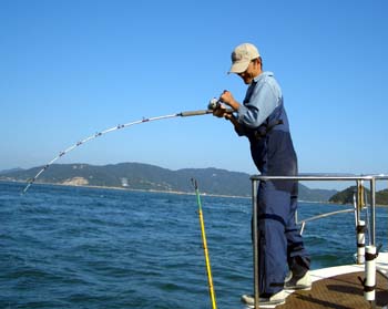 竹原港を7時に出港し、最初のポイントに向かった。そこは水深40mから18m位までかけ上がった瀬になっていて、潮流が9ノット以上にもなる難所だ。しかも30mから25mラインにかけ上がる時は1秒かからない。