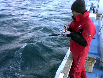 本日は恐和島マリンの大石船長(そうさん)にお世話になりました。前日は引きの潮では当たらなかったそうですが、この日は引きの潮が効きだすとでもアタリがあった。