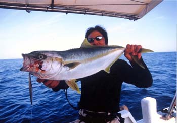 潮はあまり動いてないようだったが、しばらくして船中アタリが出始め、鈴木氏がヒラマサをキャッチ。植村氏も初ヒラマサをゲットした。