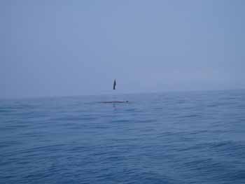 友人のペンシル高速早巻きに小型のシイラが数本ヒット。私も真似て同じように早巻きをするがヒットしない。それならいつものようにスローにダートさせていたら、メーターオーバーのシイラが水面から頭を出してチェイスしてきた。