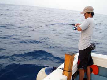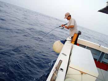 ガボッとヒットした途端、ジージーラインを引き出して竹の下をくぐっていった。ラインが擦れる嫌な感触が伝わり、ベールを返してしのいだ。船長が上手く船をまわしてかわすことができたが、その後右舷から左舷に移動しようとした時に、一気に走られ船べりでラインブレイク。
