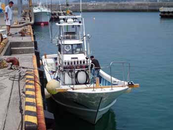 今回お世話になった信香丸。背中が見えるのは国光船長さんです。