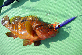 しばらくして私が50cm程のヤズをキャッチ。潮も動かなくなり根魚でも狙ってみようかとポイント移動。