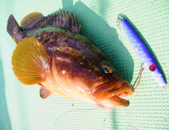 終盤のポイントで井上氏が4.2キロのヒラマサをキャッチした。青物は井上氏に任せてと、私は再び根魚狙いに。