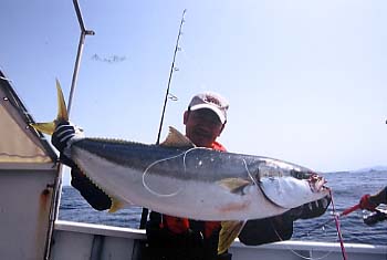 8.4キロのヒラマサは、底から15回程巻いたところでヒットした。