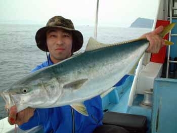 最後に行ったポイントでは、同船のハイテンションズの登氏が見事103センチのブリをゲットしました。