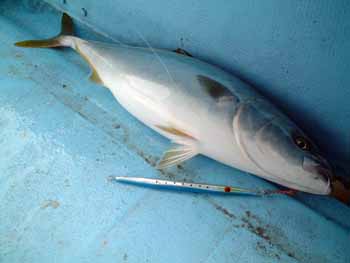 伊予灘の海域と違いジグも100g前後ではそこが判らず150g〜200gのジグが必要でした。