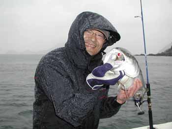 当日は終日雨降りでしたが、浮いたイカナゴを追って、いたる所でハマチのナブラが頻繁に立ってました。