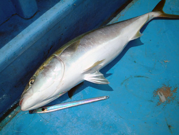 2本目も、同じ場所、同じジグ、同じヒットパターンで、少し小ぶりな76センチのハマチをゲットしました。