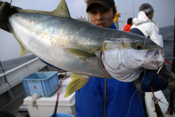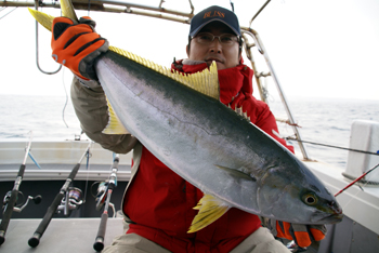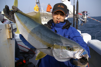 水深40m程の浅いポイントで、ヒットするのはヒラゴクラスばかりだったが、よくアタッていた。