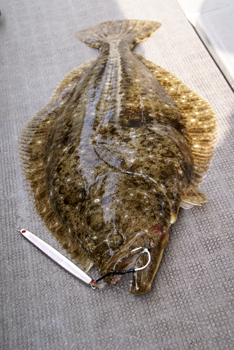 K.I.LONGの150gを逆付けにして、ヒラヒラさせていたらヒラメがヒットした。平戸は大マサだけでなくヒラメも有名です。