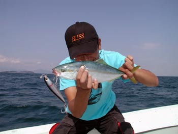 1本目はこの場所では珍しく、カンパチの子がヒットした。