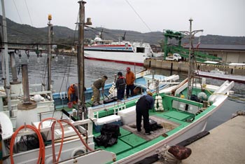奥に見えるのが萩から乗ってきた「おにようず」というフェリーです。