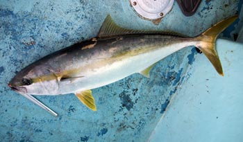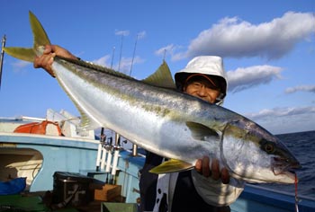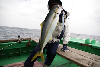 半日、半日の2日間、3人でヒラマサ8キロ1本、5キロクラス〜3キロクラスのハマチ、ヒラマサ20本くらいでした。