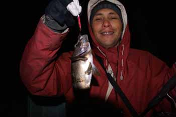 岸よりではシーバスがヒットし、粘るがサイズが大きく、いっきに走られラインブレイク。