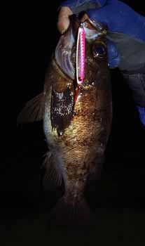 引きの潮が強く効きだして、7gでは釣り難くなり14gで上手くタナに入るとアタリが続いた。