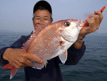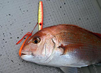 同様にジグラバへ変更したら、アタリが良く出だし、恵南氏もマダイをキャッチされた。