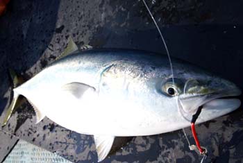 残念ながらブリの回遊も無く、でかいアジのスレ掛かりのみ。